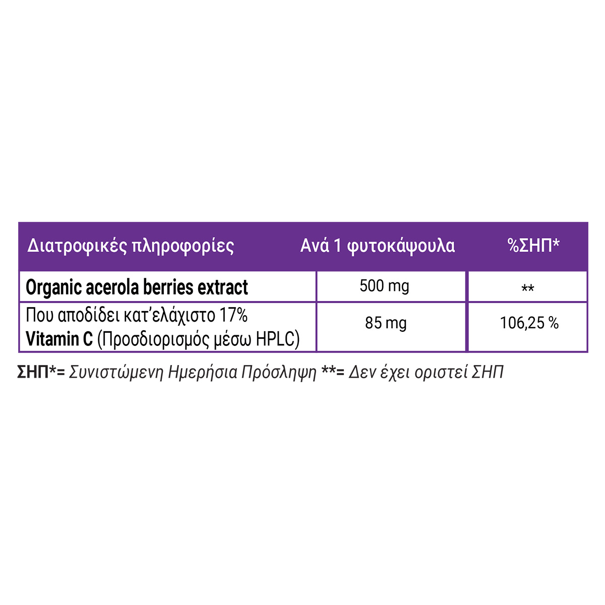 • Aποδίδουν 85 mg φυσικής βιταμίνης C ανά κάψουλα