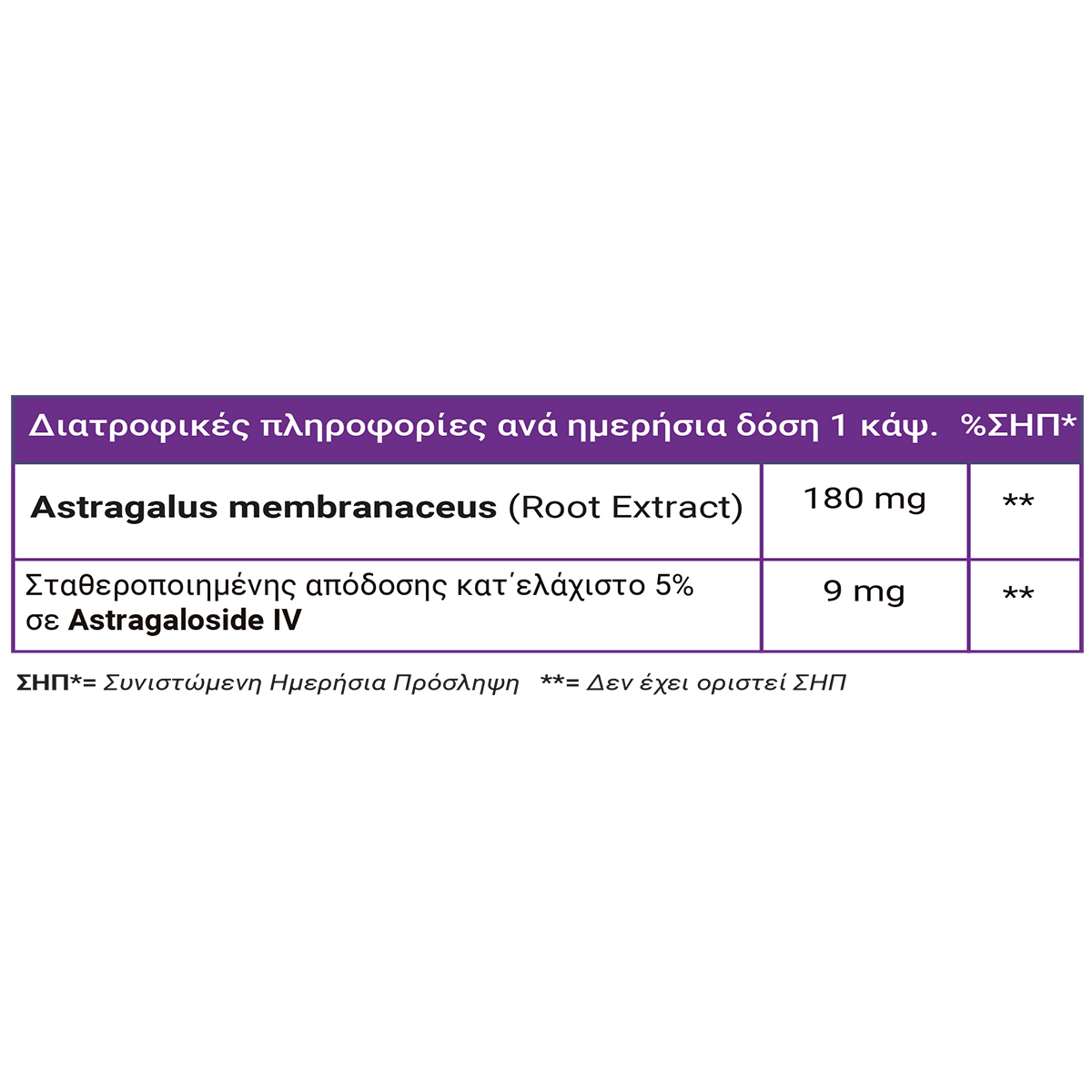 Συμπλήρωμα διατροφής με ισχυρό εκχύλισμα απο τη ρίζα του φυτού αστράγαλος σταθεροποιημένης απόδοσης