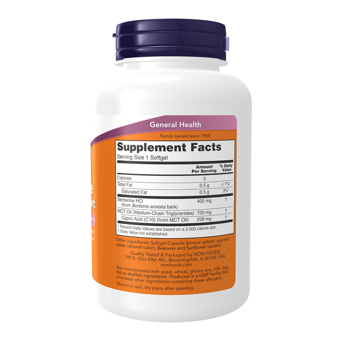 Κλινικές μελέτες υποδεικνύουν ότι η βερβερίνη βοηθά ως προς την υποστήριξη του μεταβολισμού της γλυκόζης (και των λιπιδίων) ήδη εντός των φυσιολογικών επιπέδων.* Λόγω της περιορισμένης βιοδιαθεσιμότητάς της, το σκεύασμα Berberine Glucose Support της NOW διαθέτει καπρικό οξύ (C10, ένα τριγλυκερίδιο μεσαίας αλύσου) για την επίτευξη της βέλτιστης απορρόφησης και διαθεσιμότητας της βερβερίνης από τον οργανισμό καθώς και την ανακούφιση της γαστρεντερικής οδού κατά τη συμπληρωματική λήψη της.