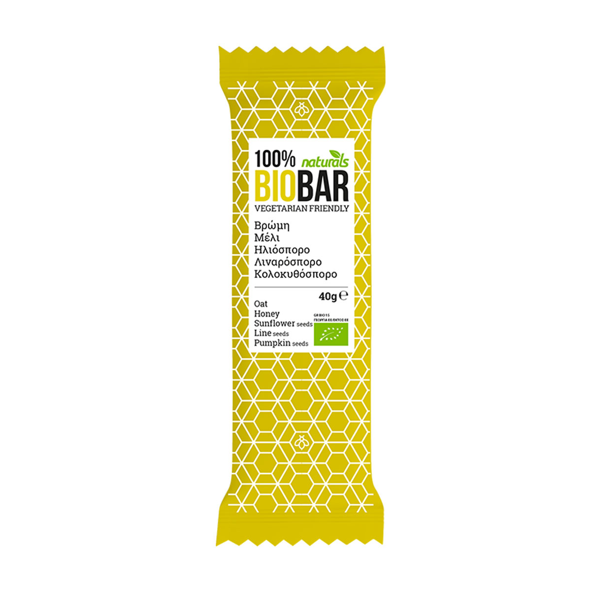 Bio Bar Βιολογική μπάρα βρώμης με Μέλι, ηλιόσπορο, λιναρόσπορο και κολοκυθόσπορο Naturals 40g