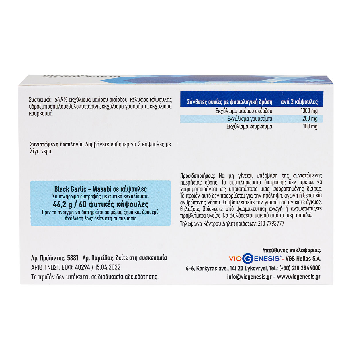 Vegan Black Garlic Wasabi Viogenesis 60 ταμπλέτες