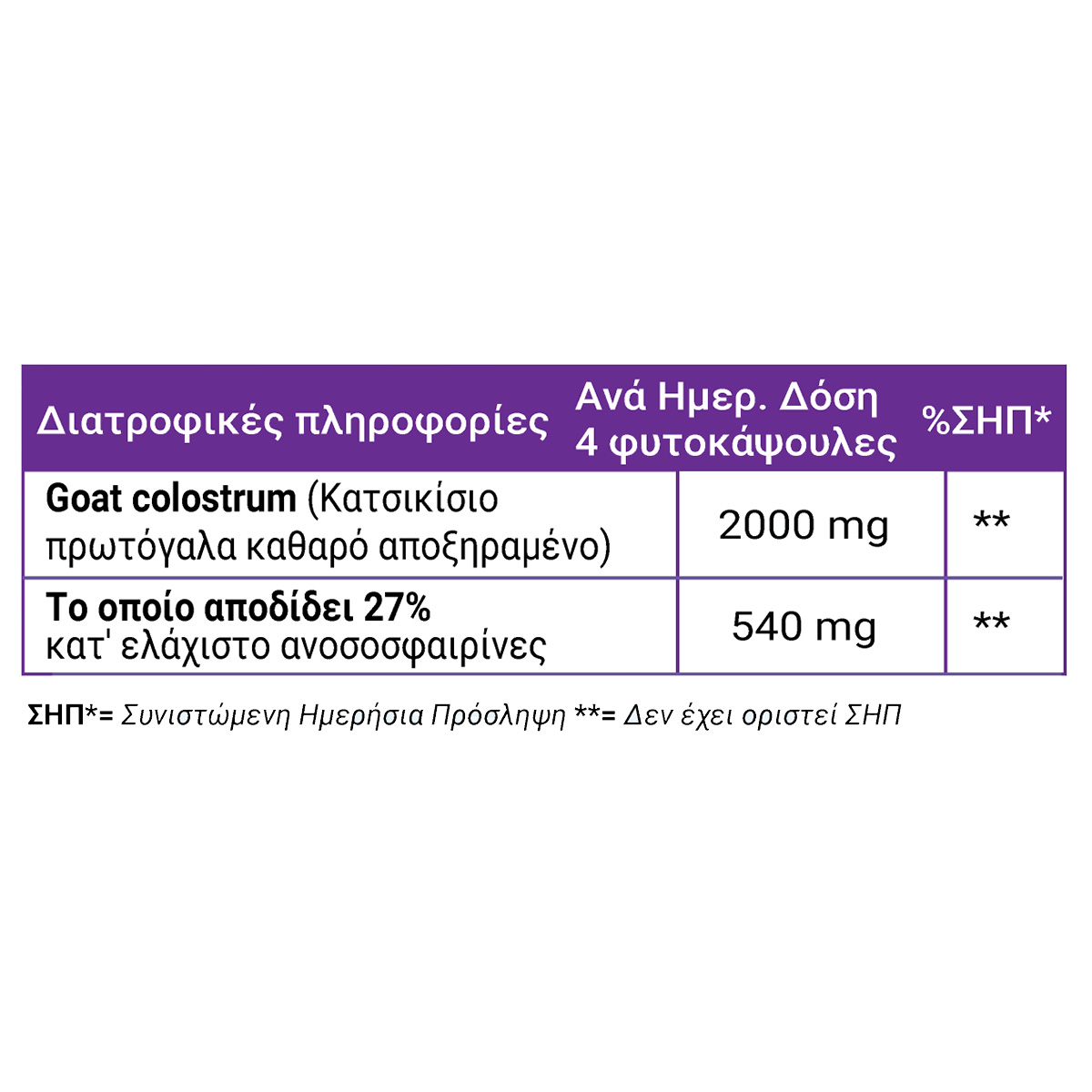 Που αποδίδει κατ’ελάχιστο 27% ανοσοσφαιρίνες 540 mg **