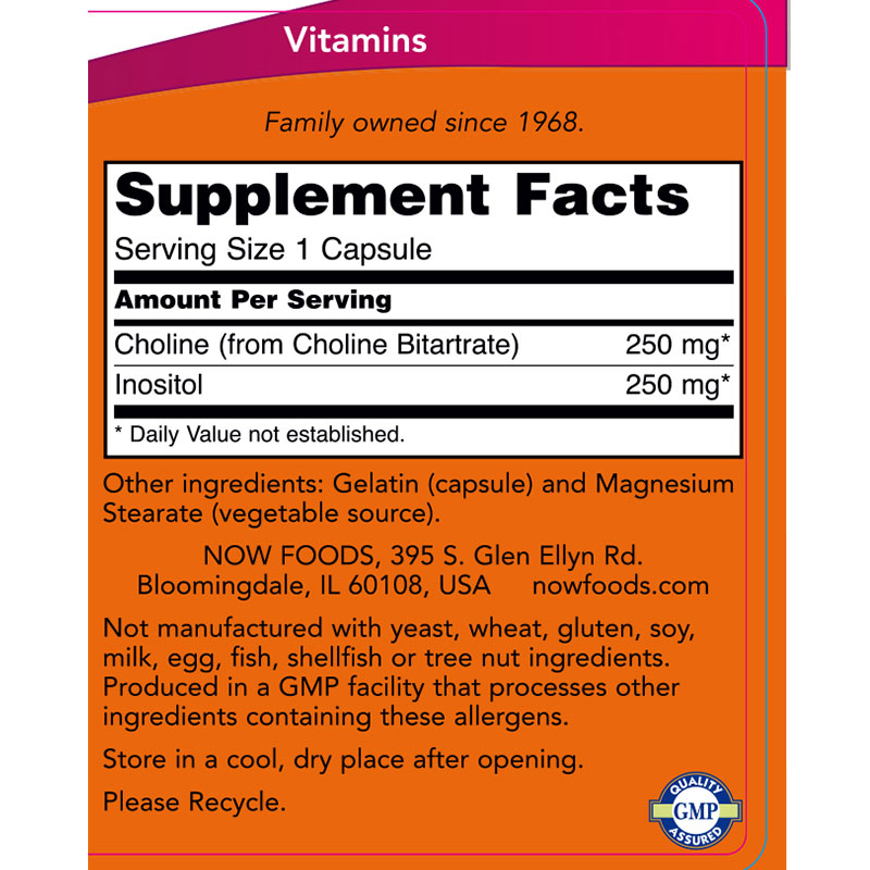 Φυτική Χολίνη και Ινοσιτόλη 500 mg Now foods 100 Κάψουλες
