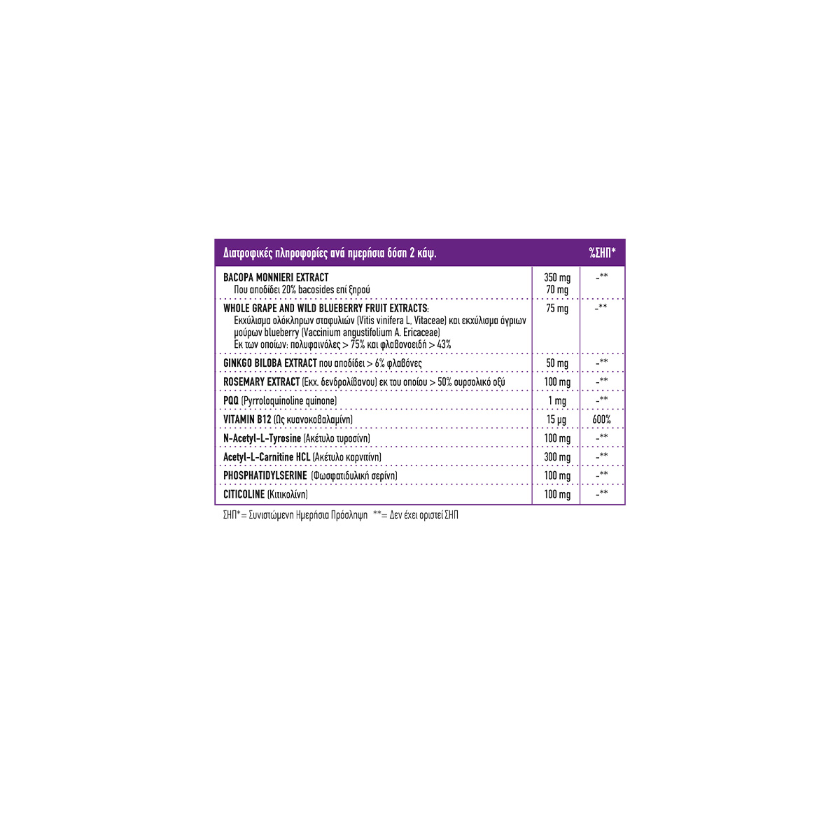 | Εκχύλισμα Bacopa Monnieri (Που αποδίδει 20% bacosides επί ξηρού) | 350 mg | ** |