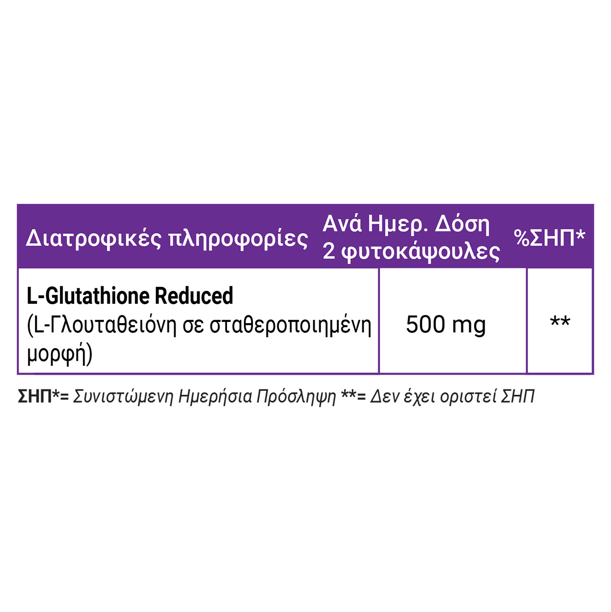 ΔΡΑΣΤΙΚΑ ΣΥΣΤΑΤΙΚΑ: L-Glutathione Reduced (100%), γλουταθειόνη σε σταθεροποιημένη μορφή