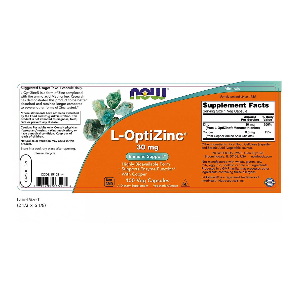 L-Optizinc 30mg Now Foods 100 φυτικές κάψουλες