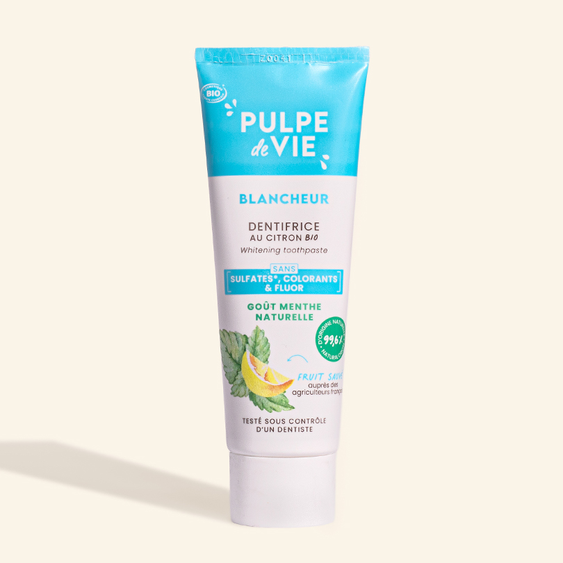 Βιολογικό Λεμόνι (Citron BIO): Το λεμόνι χρησιμοποιείται συχνά ως φυσικό λευκαντικό για τα δόντια. Χάρη στην φυσική του οξύτητα και την περιεκτικότητά του σε βιταμίνη C, μπορεί να βοηθήσει στην απομάκρυνση επιφανειακών λεκέδων από το σμάλτο των δοντιών, χαρίζοντας ένα πιο λαμπερό χαμόγελο.