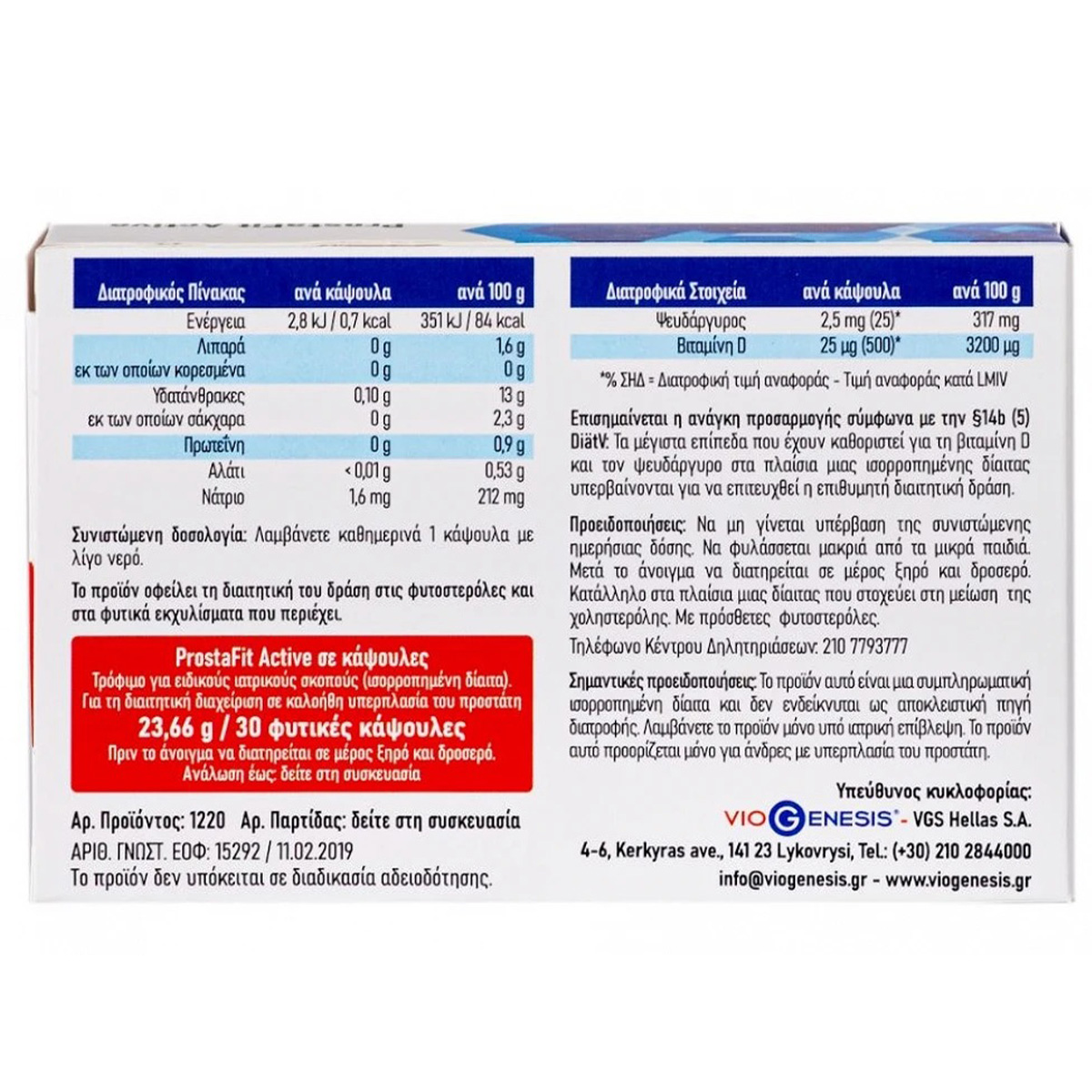 Vegan Prostafit Active Viogenesis 30 ταμπλέτες