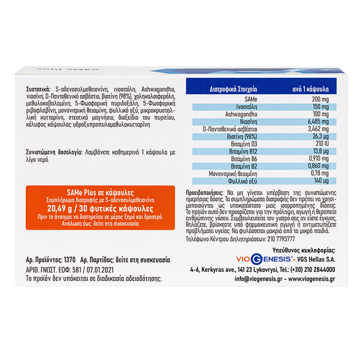 SAMe Plus Viogenesis 30 φυτικές κάψουλες