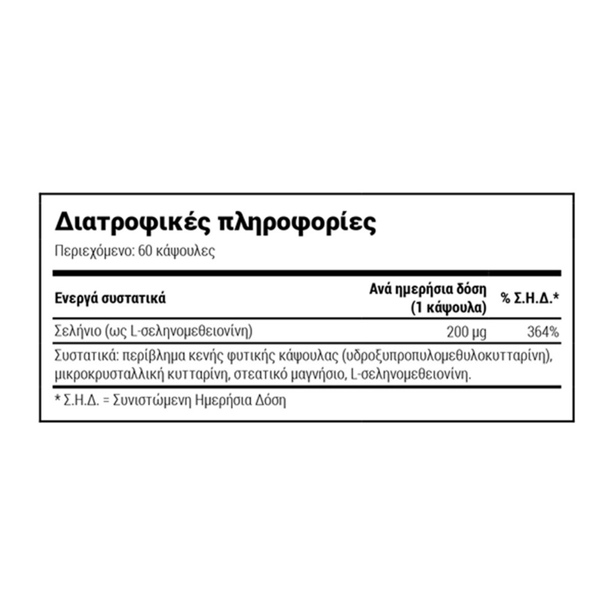 Συστατικά: Σελήνιο (ως L-σεληνομεθειονίνη) 200 μg