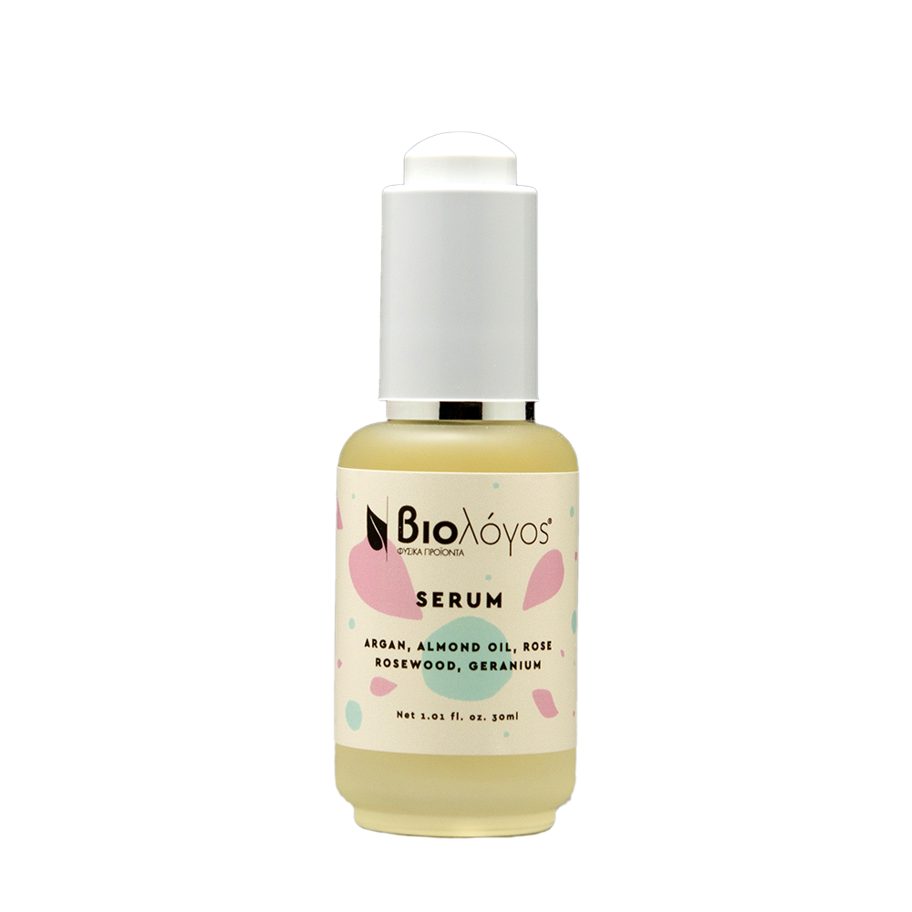 Serum με ενεργά συστατικά Έλαιο Αργκάν, Εκχύλισμα Τριαντάφυλλου και Αιθέρια Έλαια Ροδόξυλου, Γερανιού.