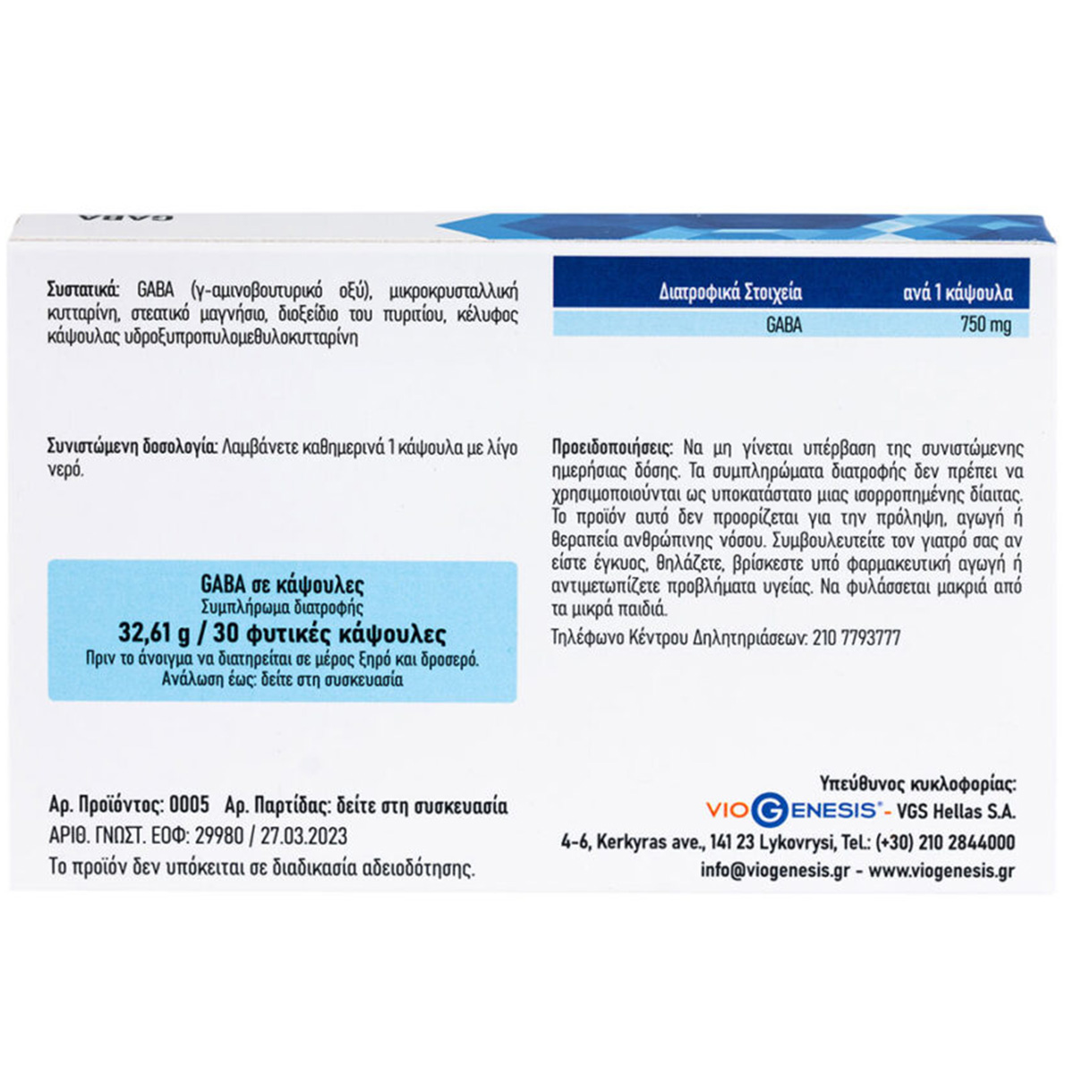 Vegan Gaba 750mg Viogenesis 30 Κάψουλες