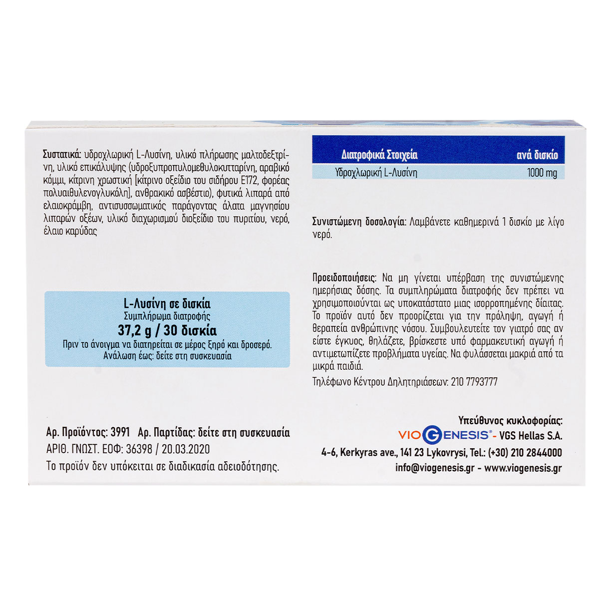 Vegan L-Lysine 1000mg Viogenesis 30 Ταμπλέτες