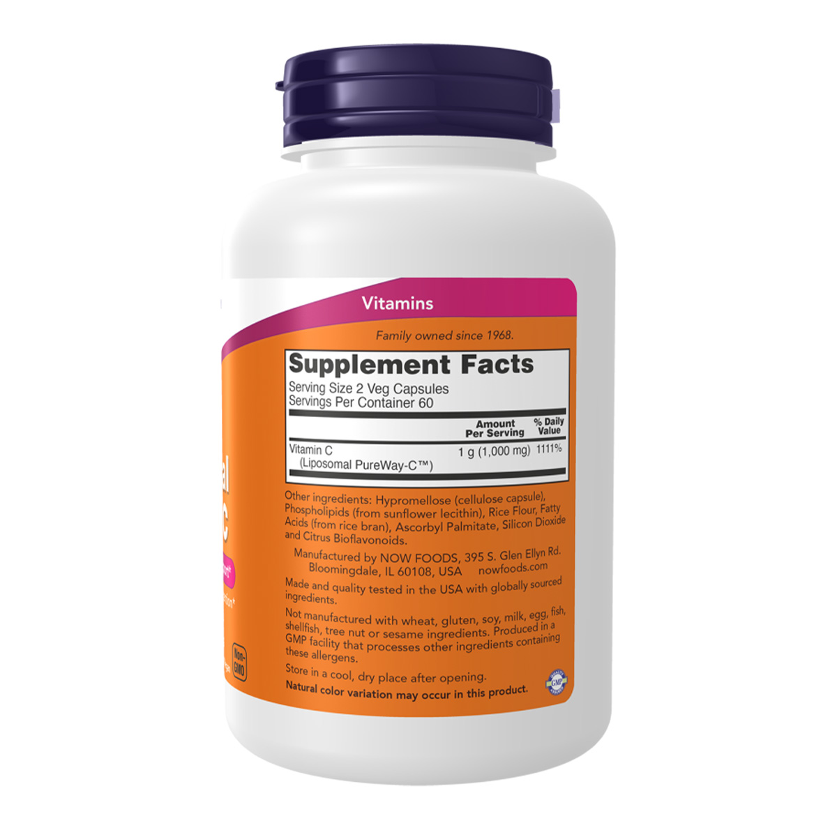 Το συμπλήρωμα διατροφής Liposomal Vitamin C της NOW περιέχει την πατενταρισμένη μορφή βιταμίνης C, PureWay-C. Πρόκειται για μια λιποσωμιακή φόρμουλα βιταμίνης C 1000 mg που επιφέρει: