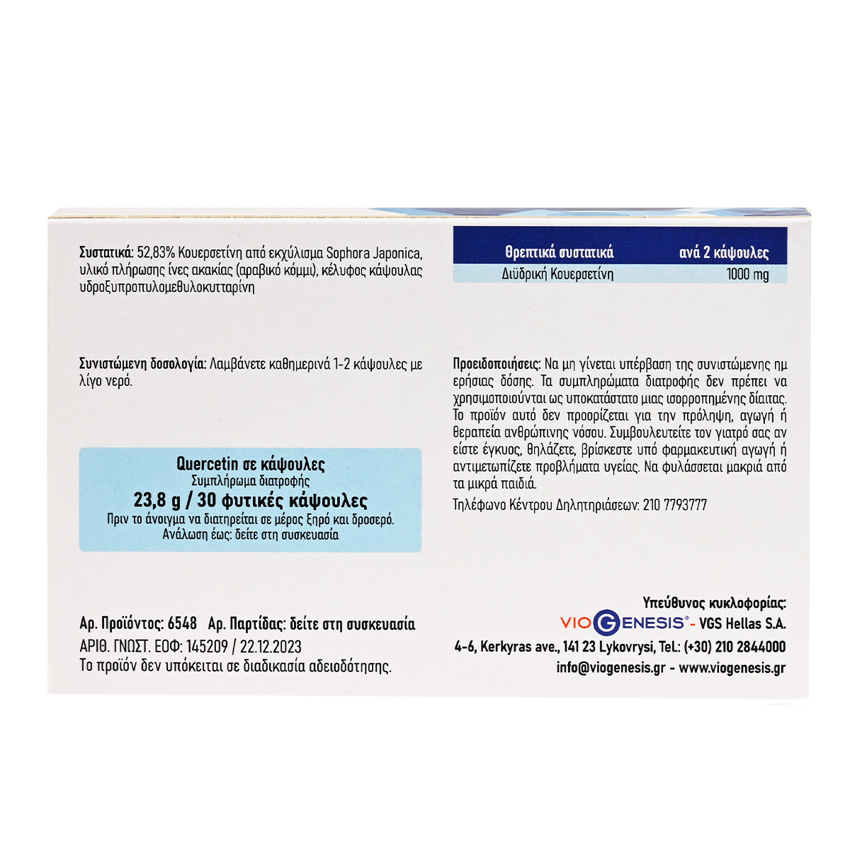 Vegan Quercetin 500mg Viogenesis 30 φυτικές κάψουλες