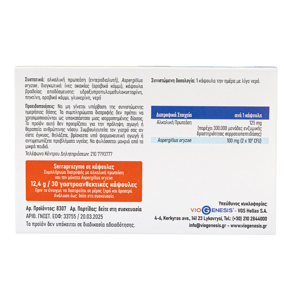 Vegan Serraprozyme 300.000SPU Viogenesis 30 γαστροανθεκτικές κάψουλες