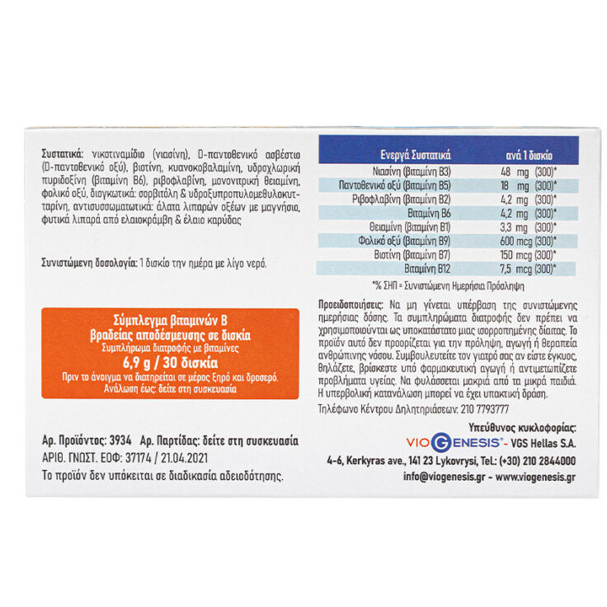 Vegan Vitamin B Complex Depot Viogenesis 30 Ταμπλέτες