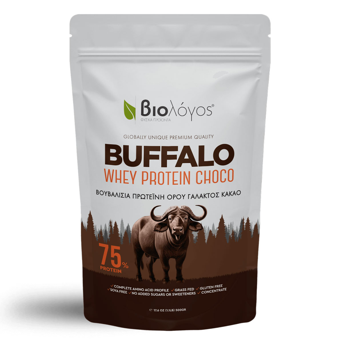 Βουβαλίσια Πρωτεΐνη Ορού Γάλακτος με κακάο 75% Βιολόγος 500g